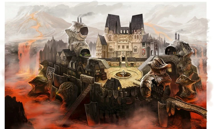 The town is now the Shieldbearer stronghold, but before the civil war, it was a flourishing city. The eruption of Mount Karka swallowed the south road to the Temple of Fire, and boiling lava creeps toward the outskirts of town.