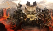 The town of Hartschild is located at the far west of Eisenberg Region, quite far from Eisen Bridge. Mount Karka is located north from it, on higher ground. The town's square is roomy enough for the lava-overwhelmed town.