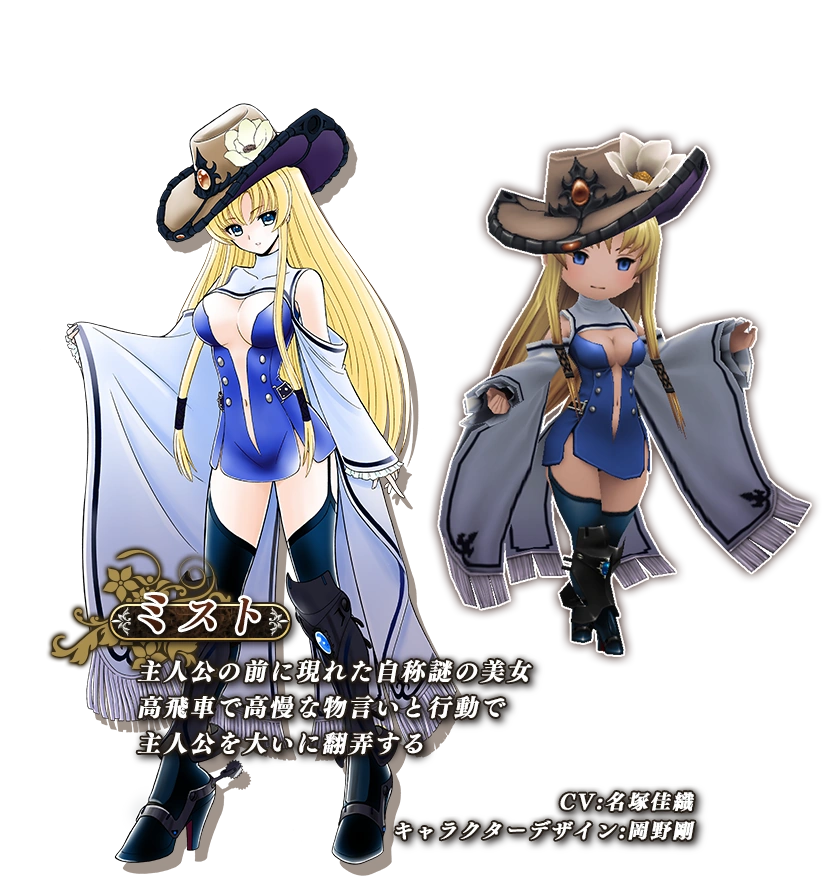 Mist (ミスト, Misuto) is a character from Bravely Default: Fairy’s Effect and a mysterious woman connected to the world's core.