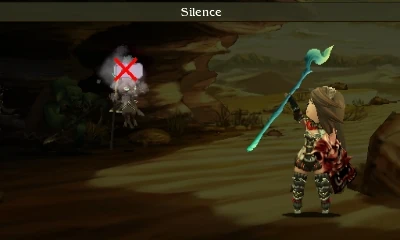 Silence causes the affected character to be unable to use any magic. It is represented by a speech bubble reading "..." hovering over the head of the afflicted character.